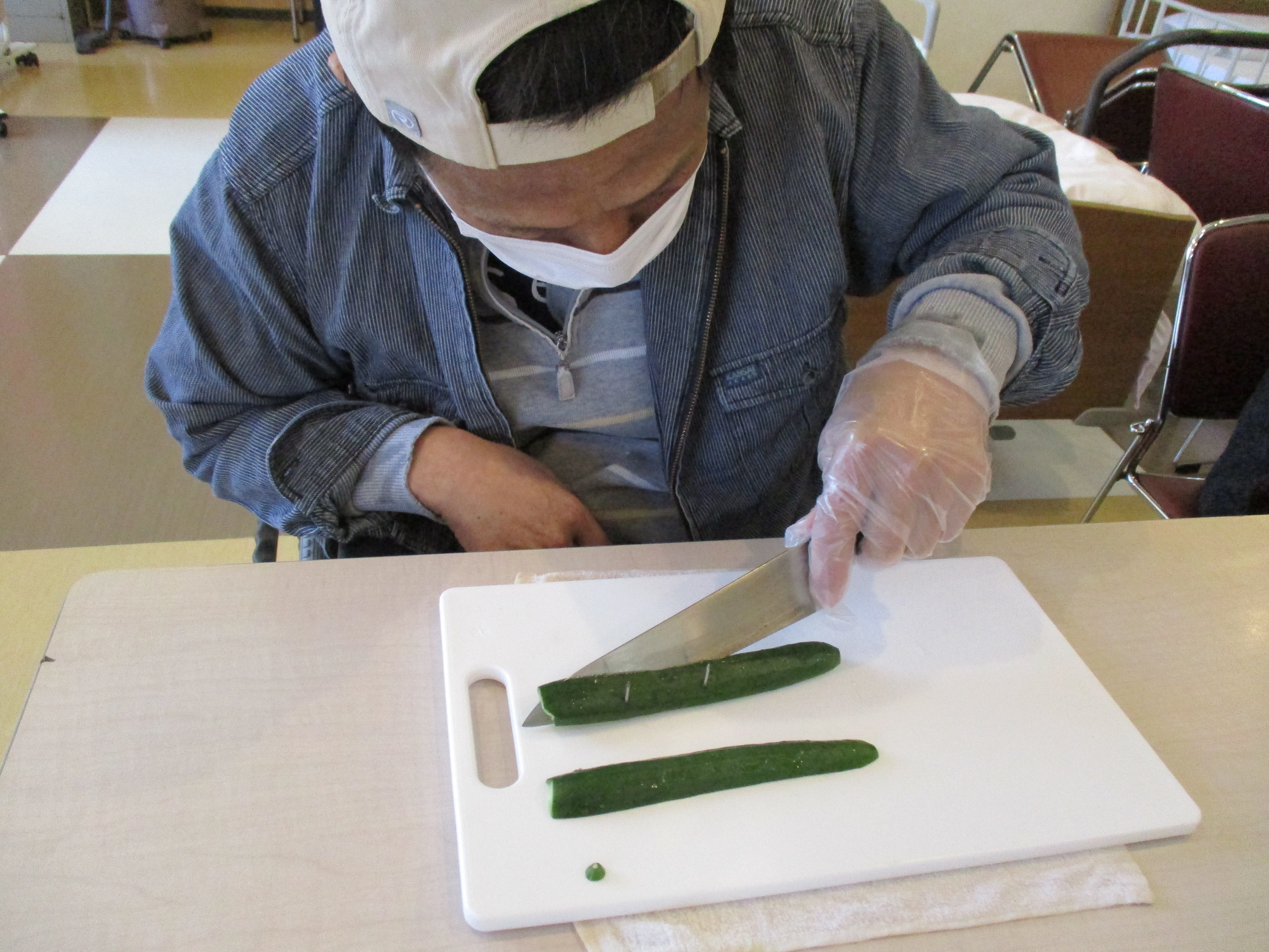 キュウリを切って...