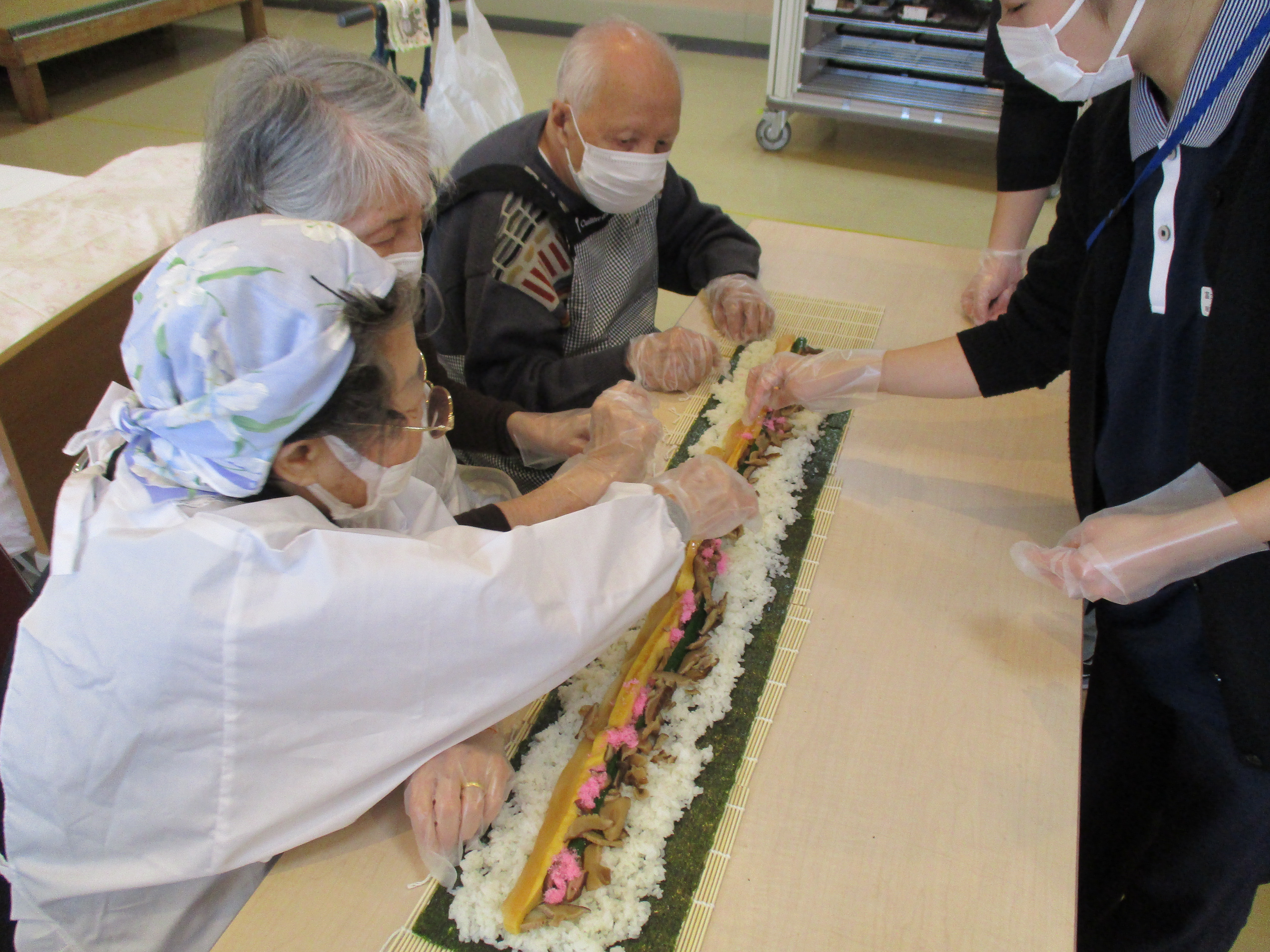片麻痺の方には専用の道具を使用してもらい、多くのお客様に協力して頂け、無事恵方巻が完成☆