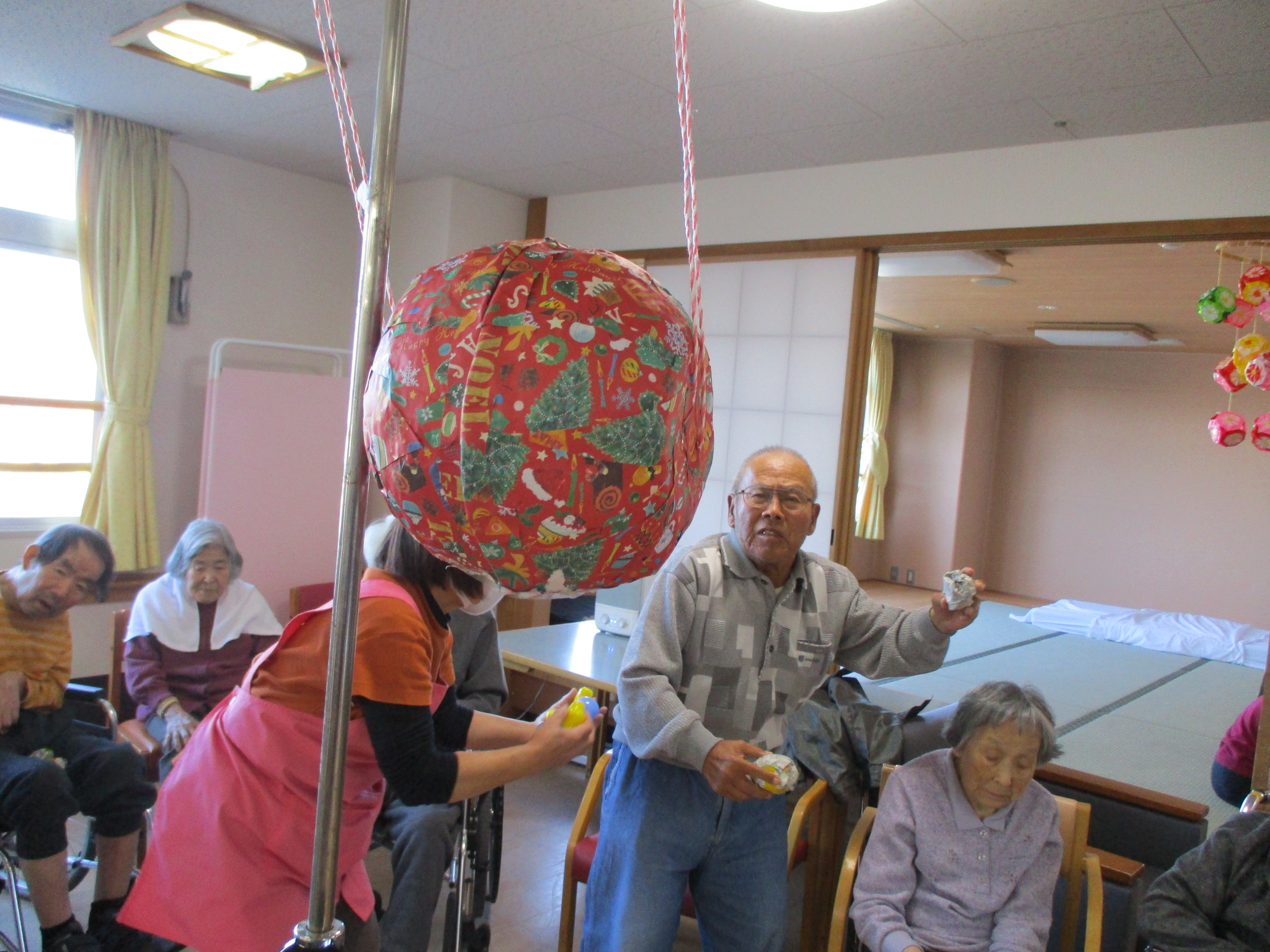 くす玉以外にもお客様みんなで輪になってクリスマスの歌を歌ったり
