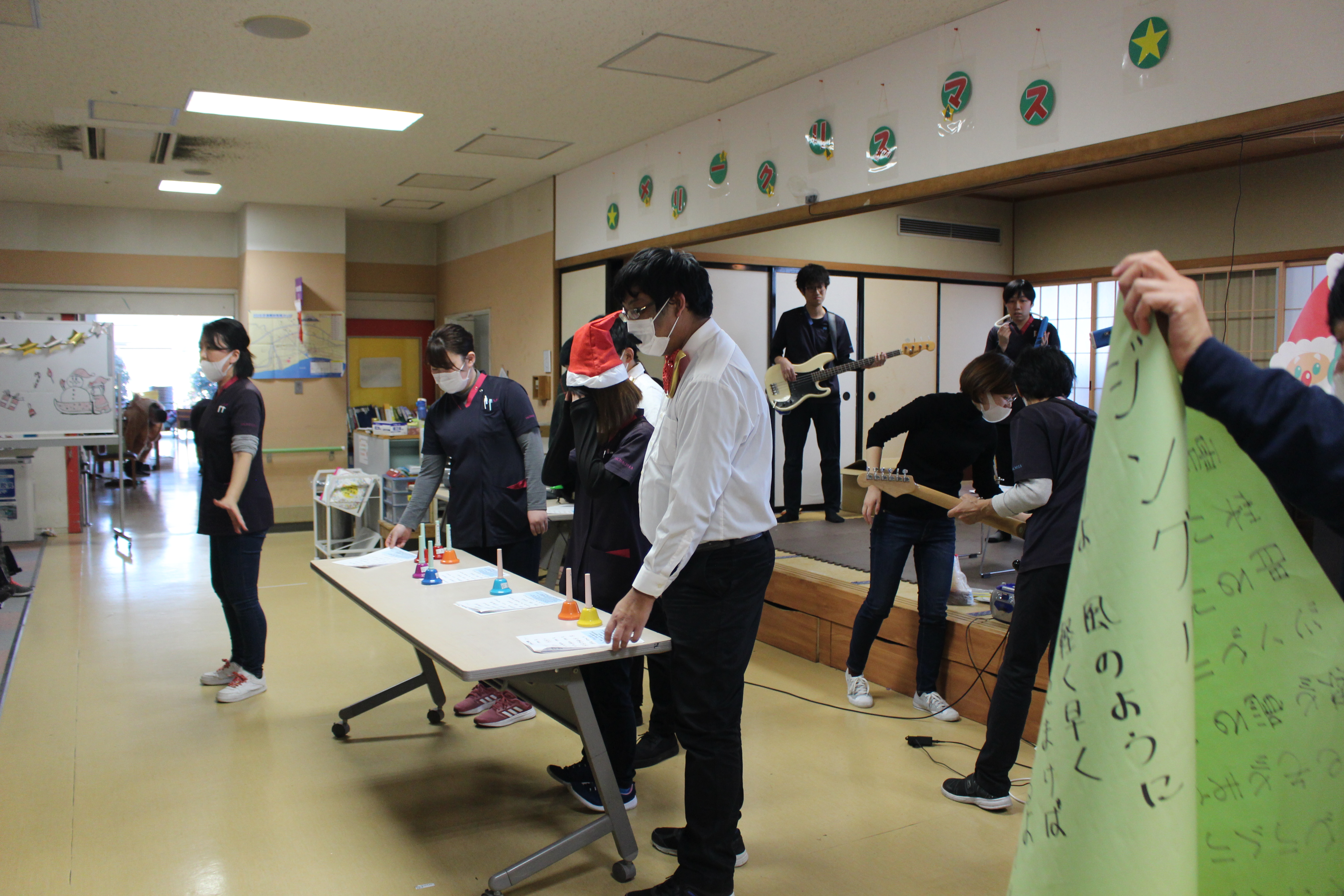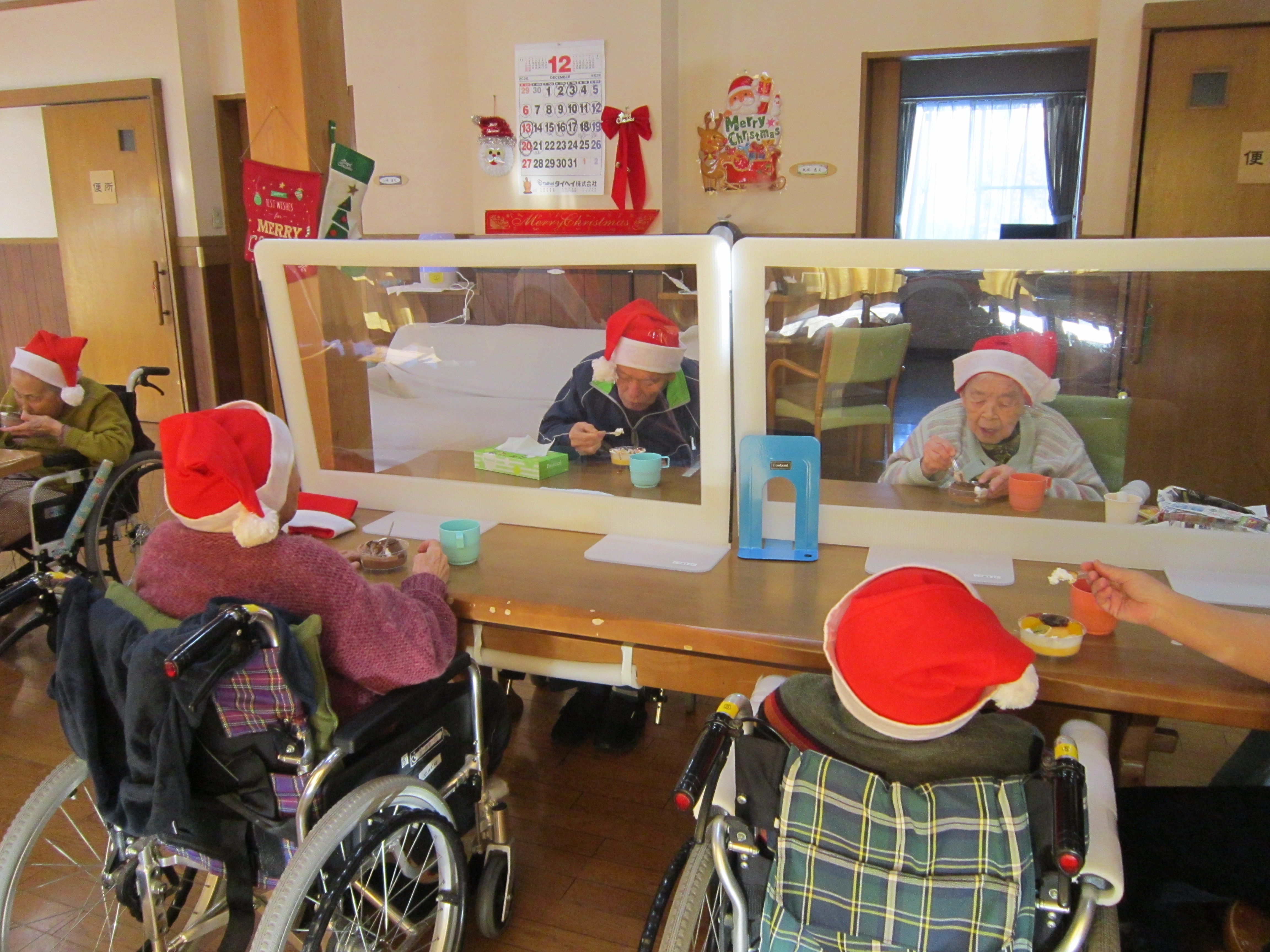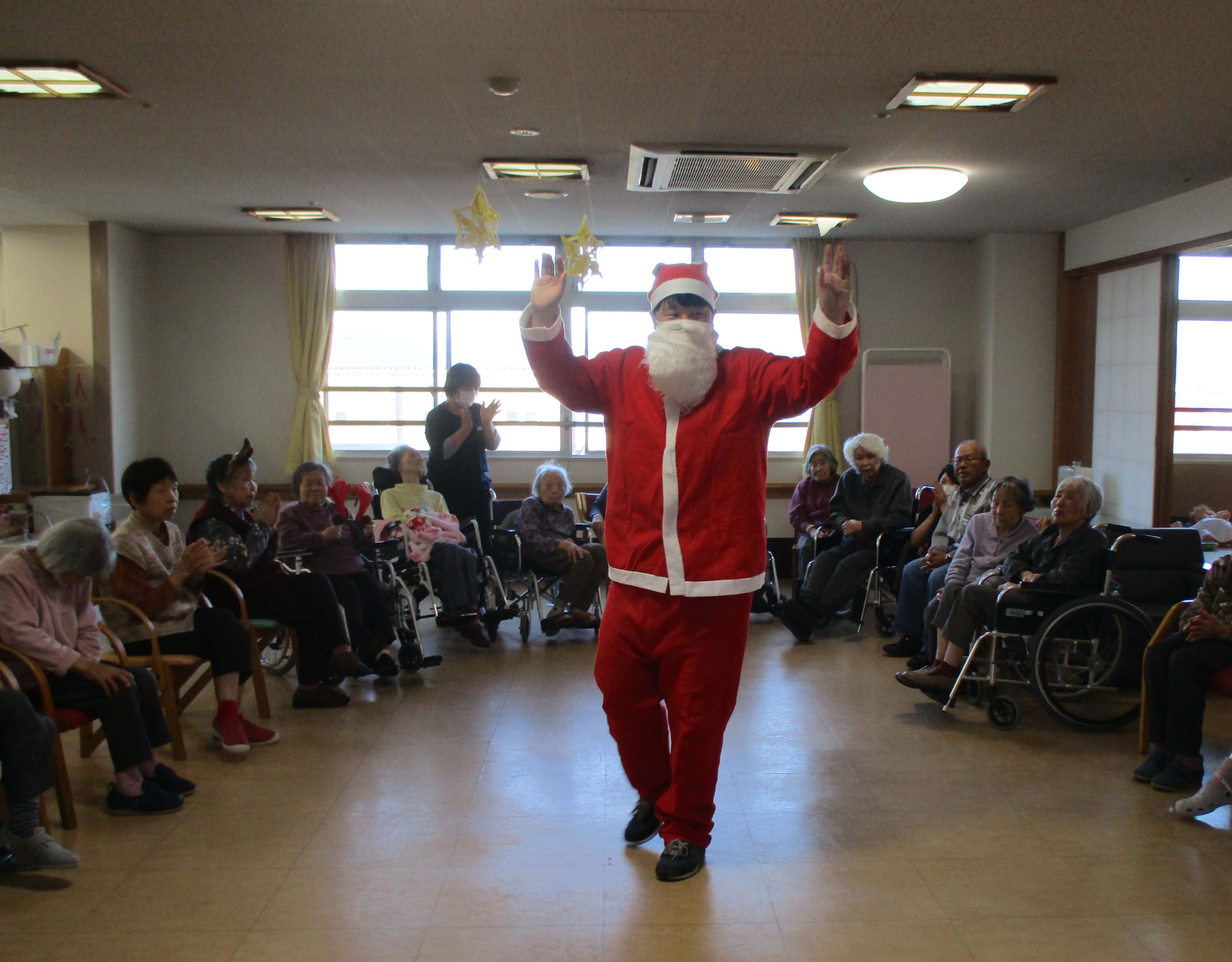 いつもはききょうの郷全体でお祝いするのですが、今年は感染対策で三階のみでのクリスマス会になりました!