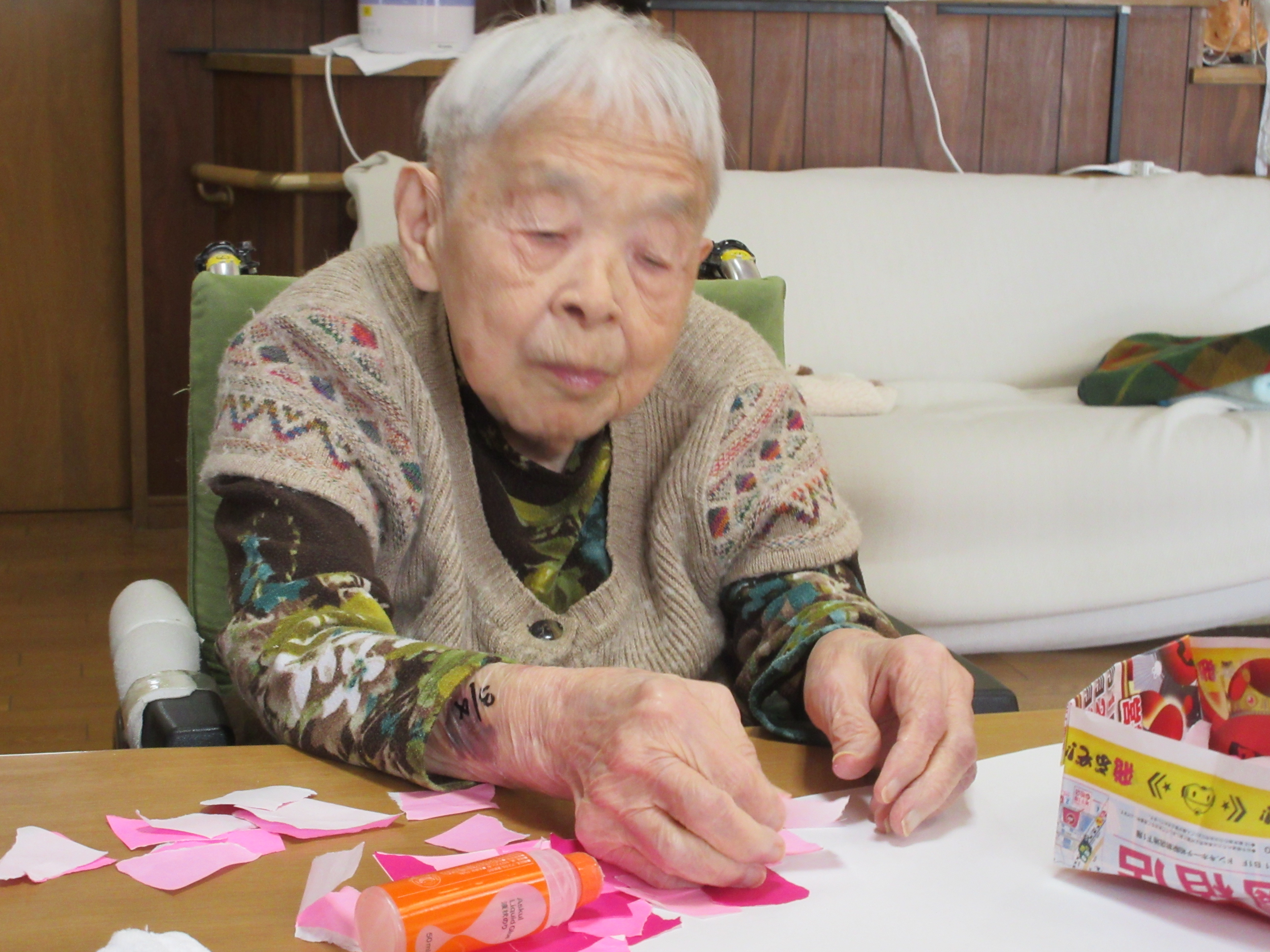 おとなりさんでは、施設内に飾る掲示物をお客様と一緒に作っています。