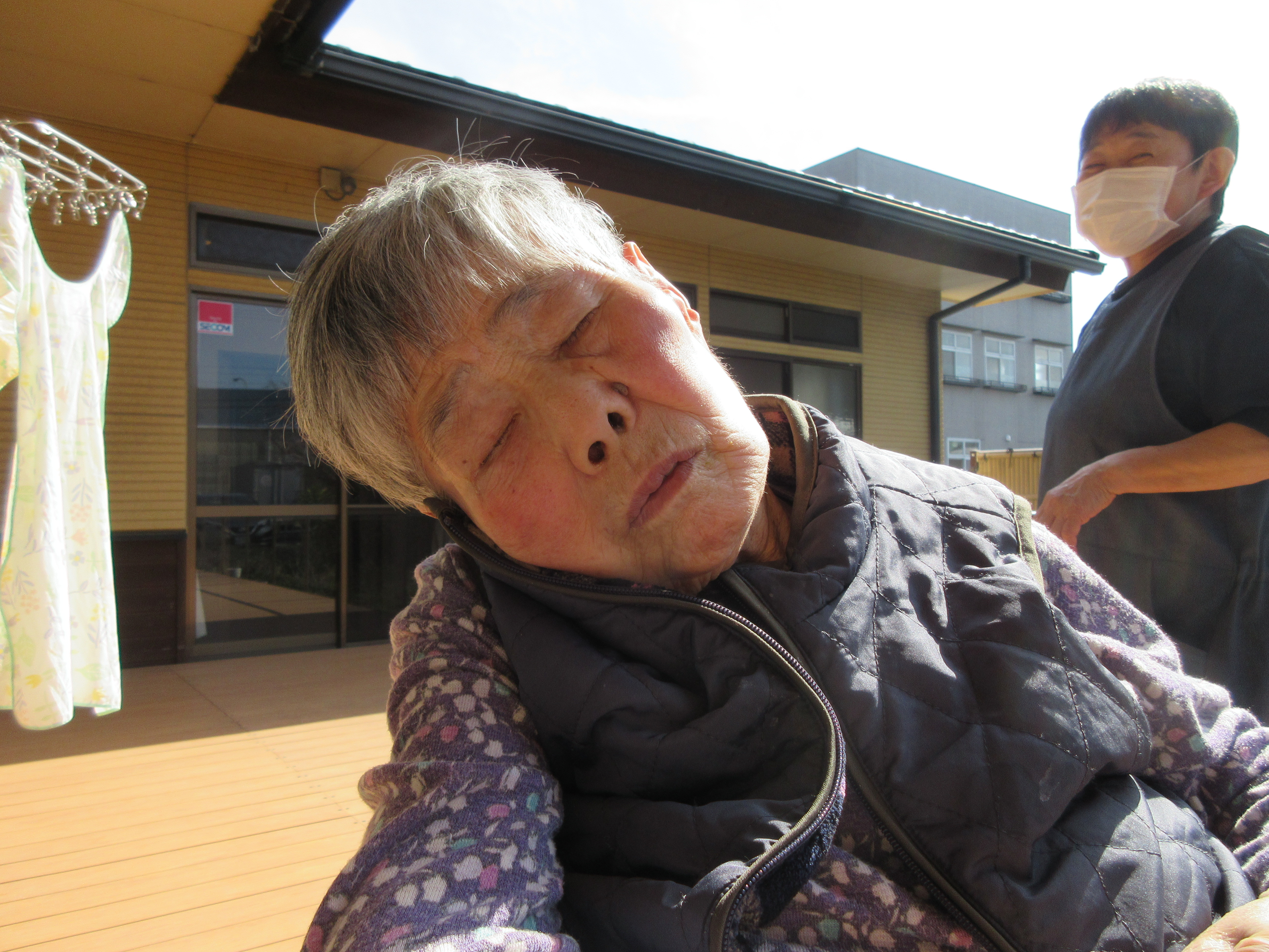デッキで日向ぼっこ