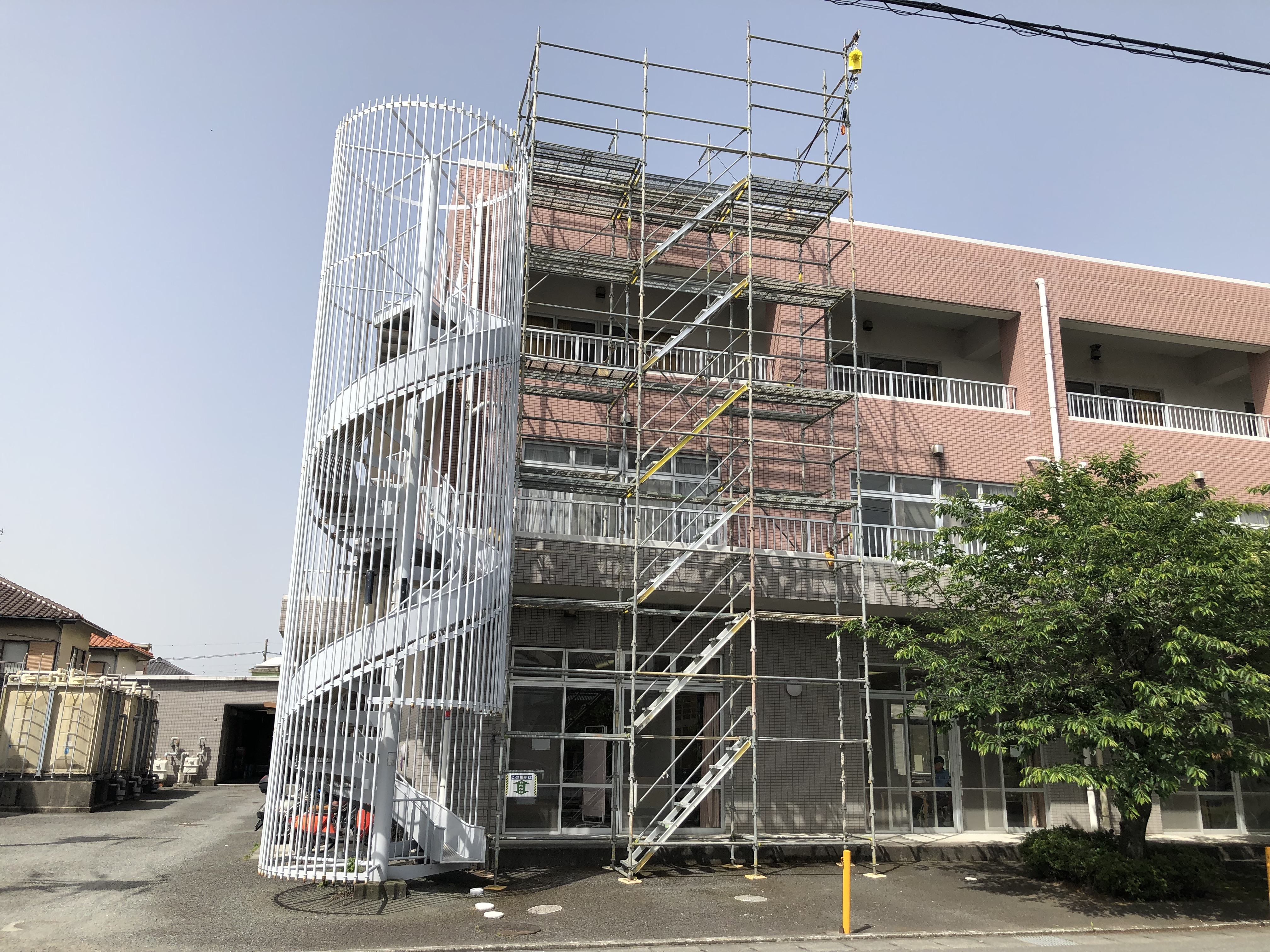 足場を外に組んでいただき、外部から屋上にあがるようにしました。