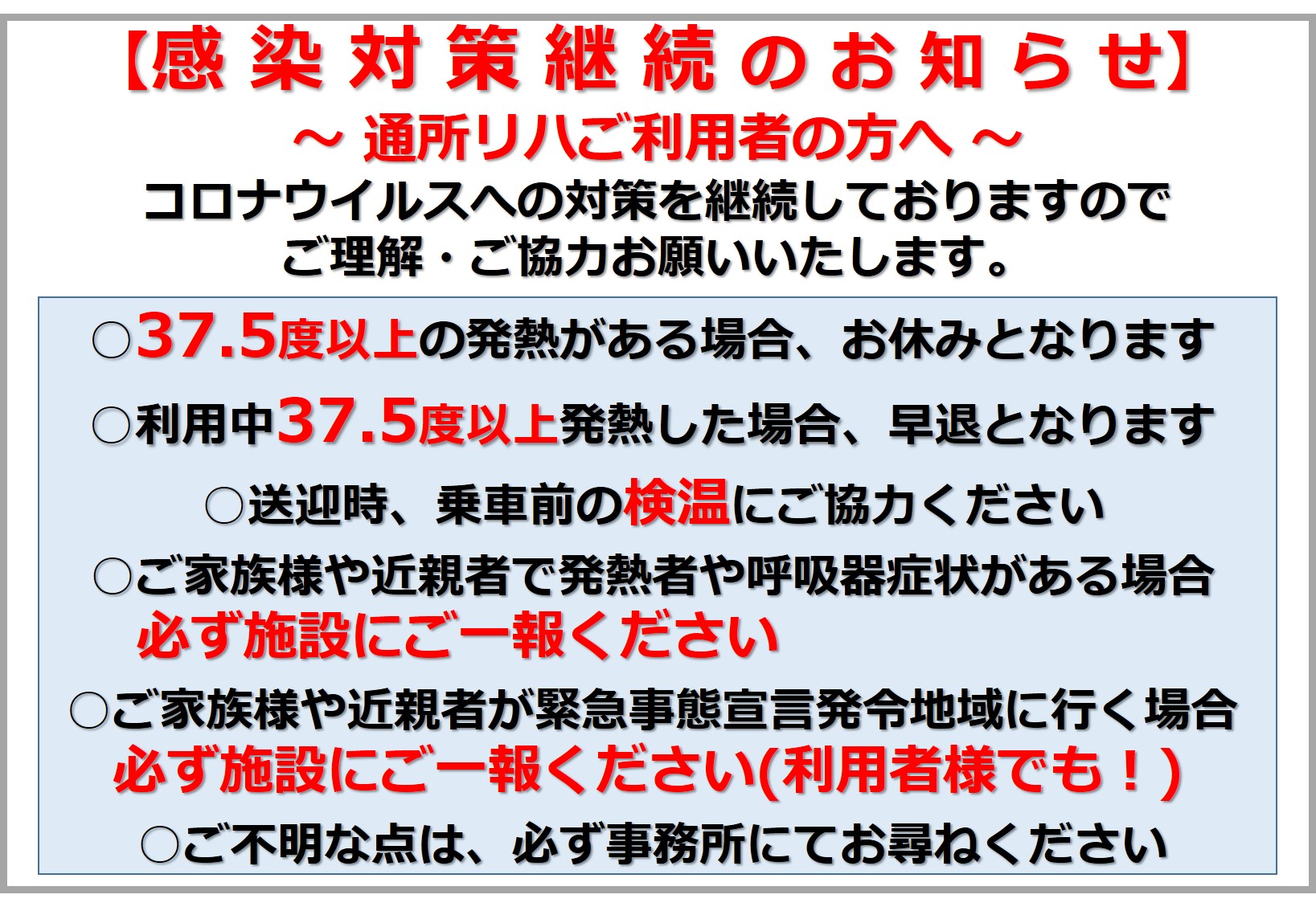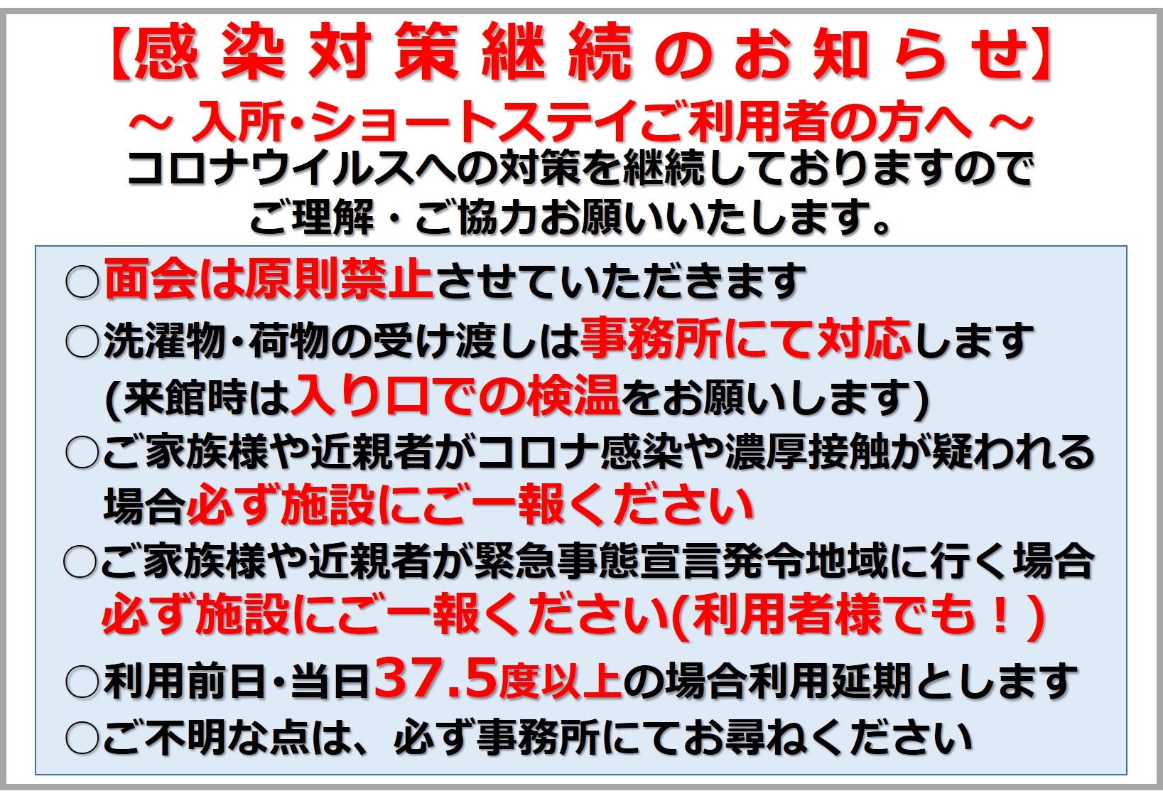 重要なお知らせ 感染対策について