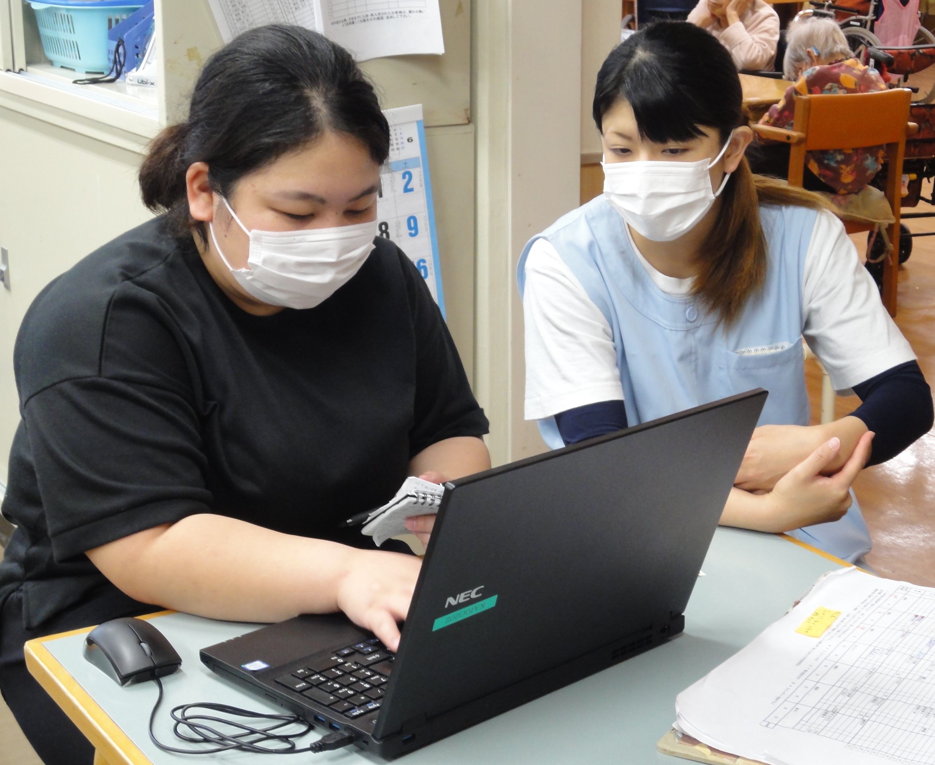 今日は、2人で入浴介助業務を実施しました。