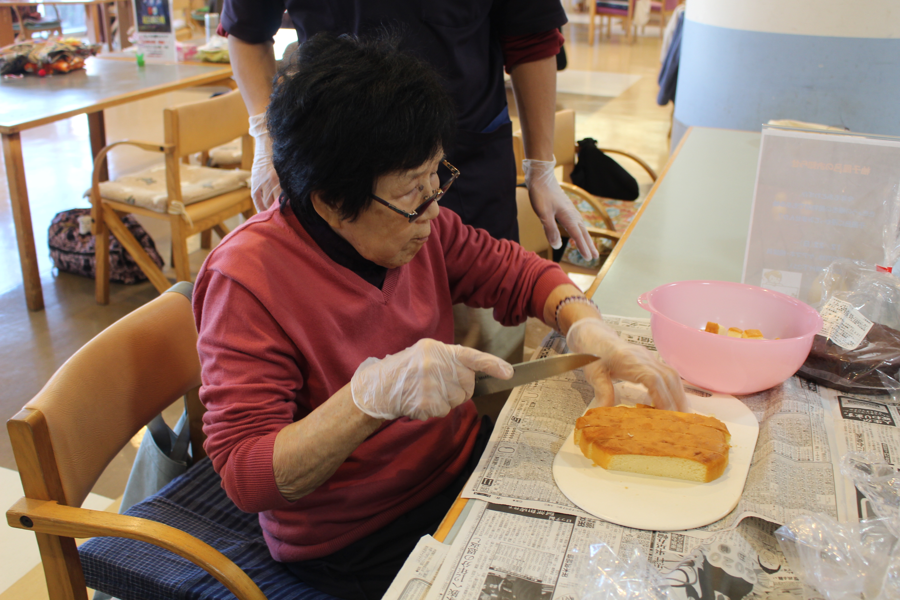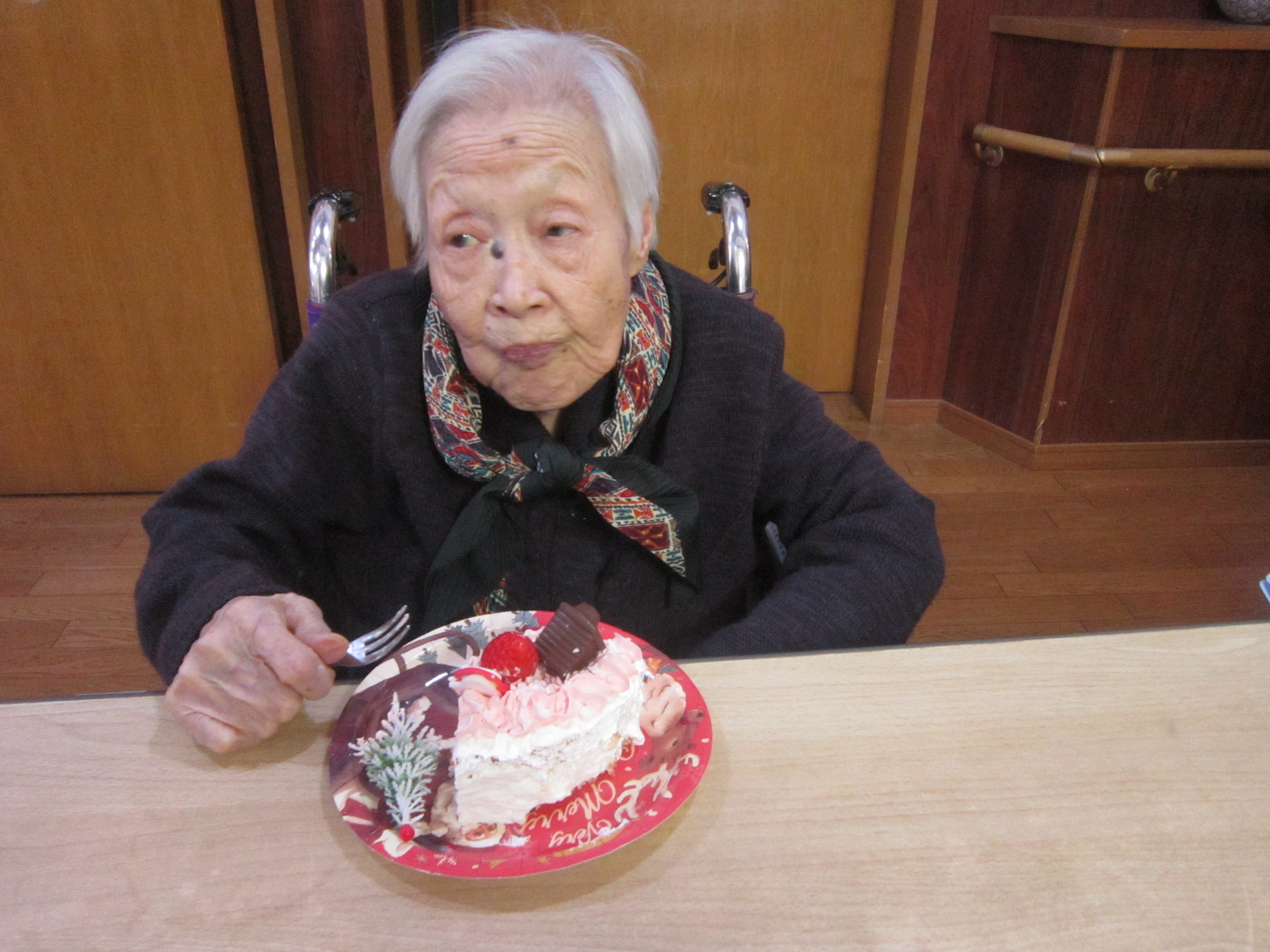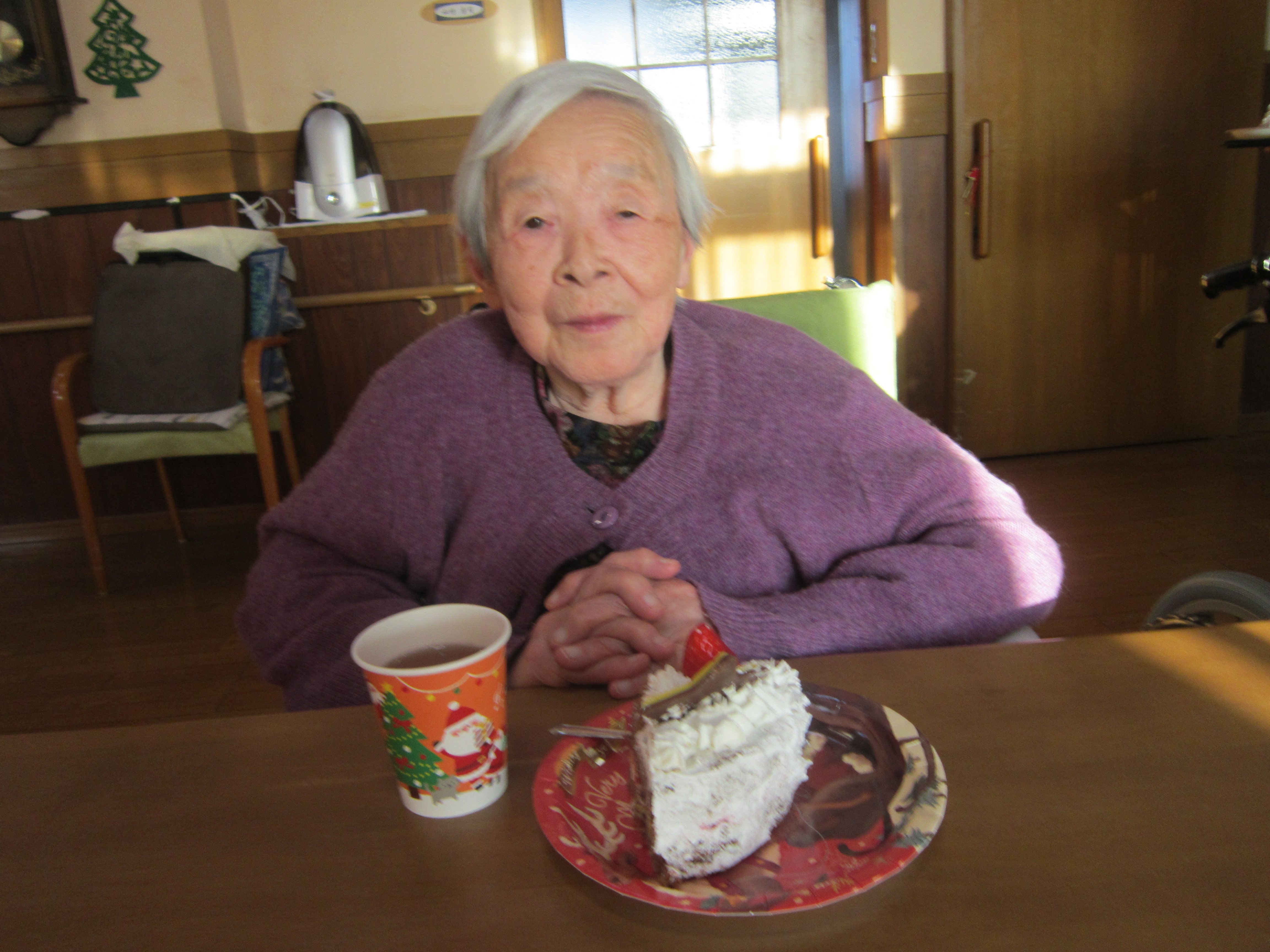 午前中からのクリスマス会も無事終わり、おやつに皆さんで作ったクリスマスケーキをおやつにいただきました!