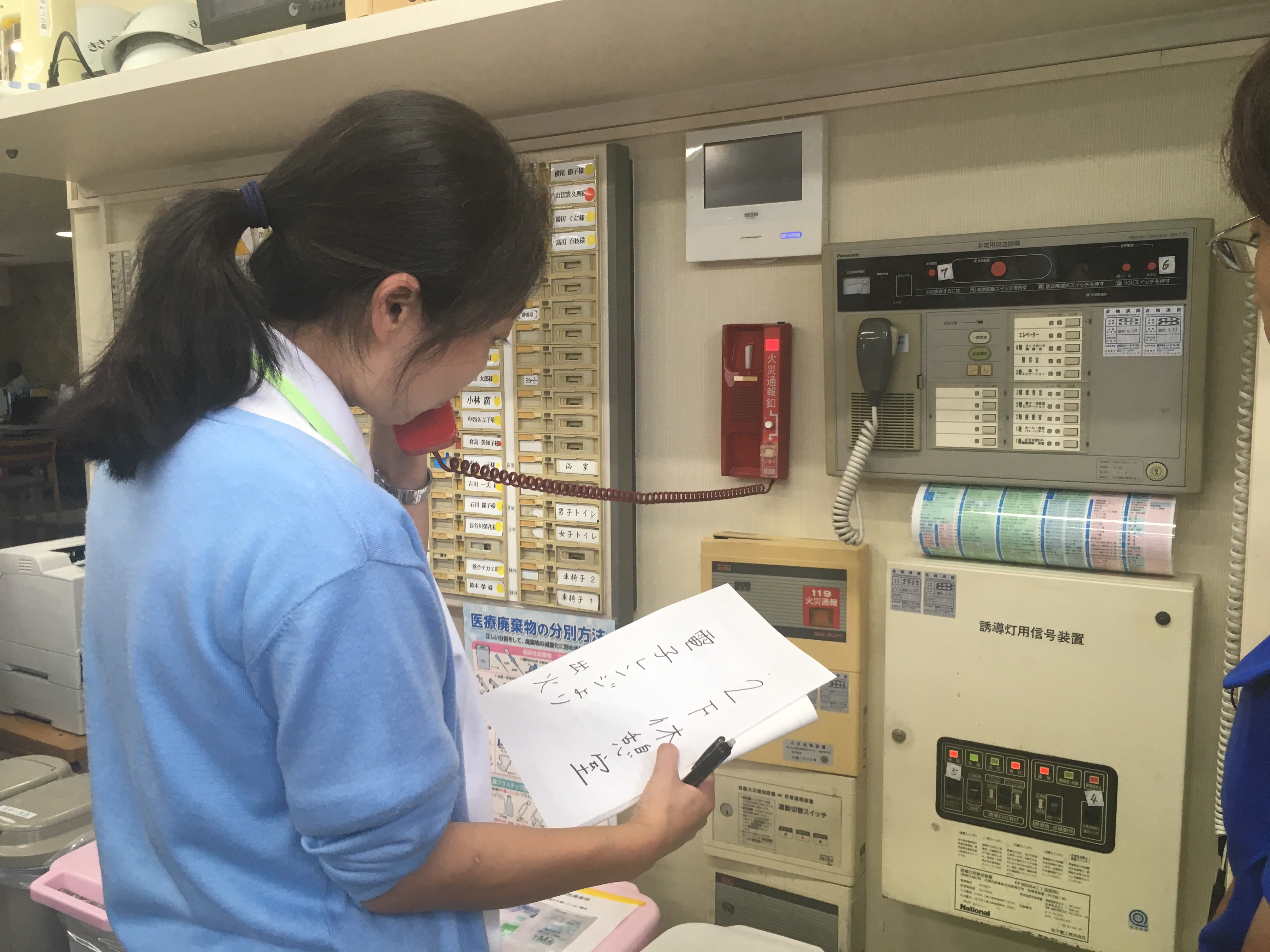 この日の防災訓練の内容は施設の消防設備を