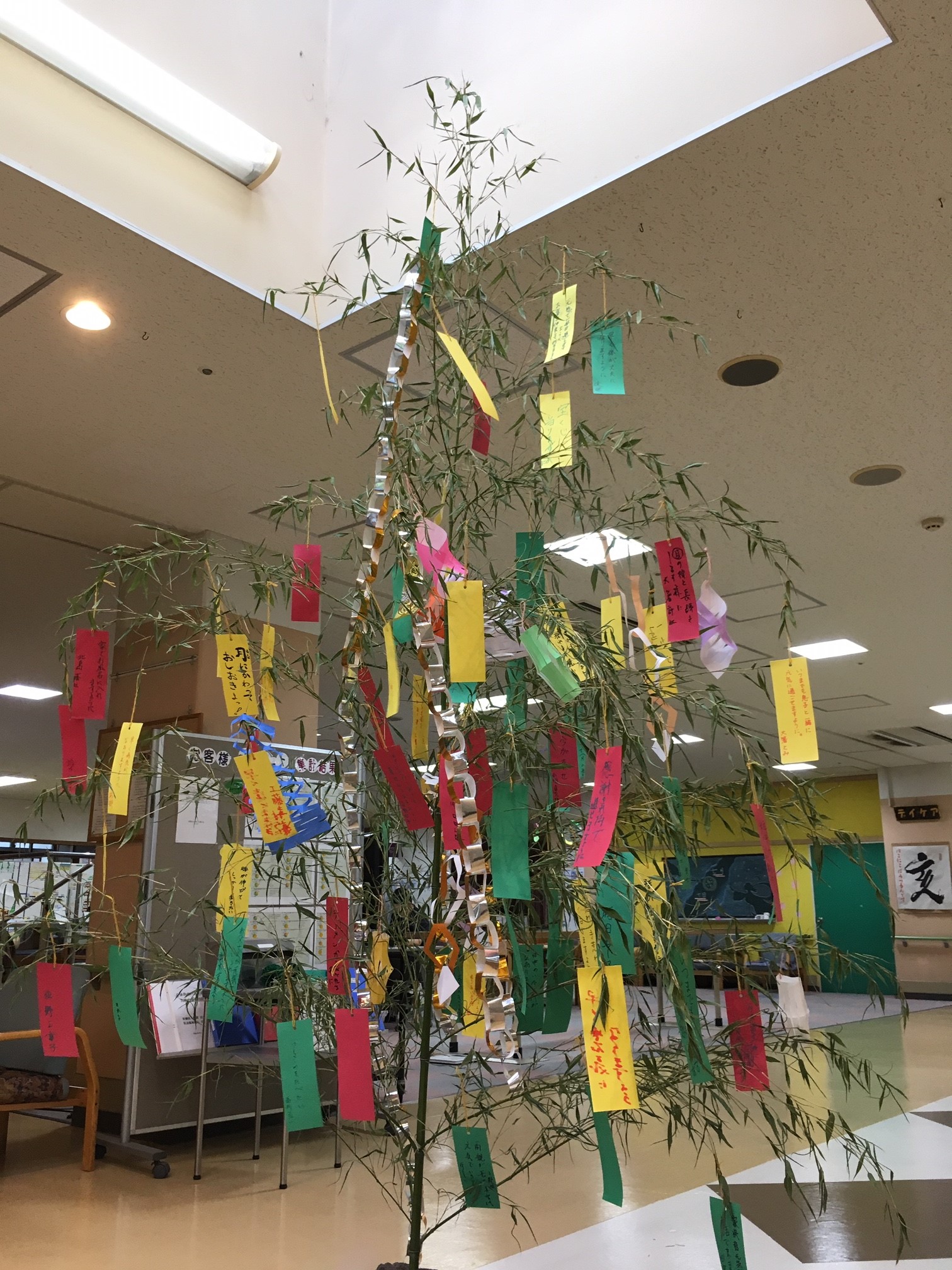 各階に笹を用意して、利用されている方々に短冊を