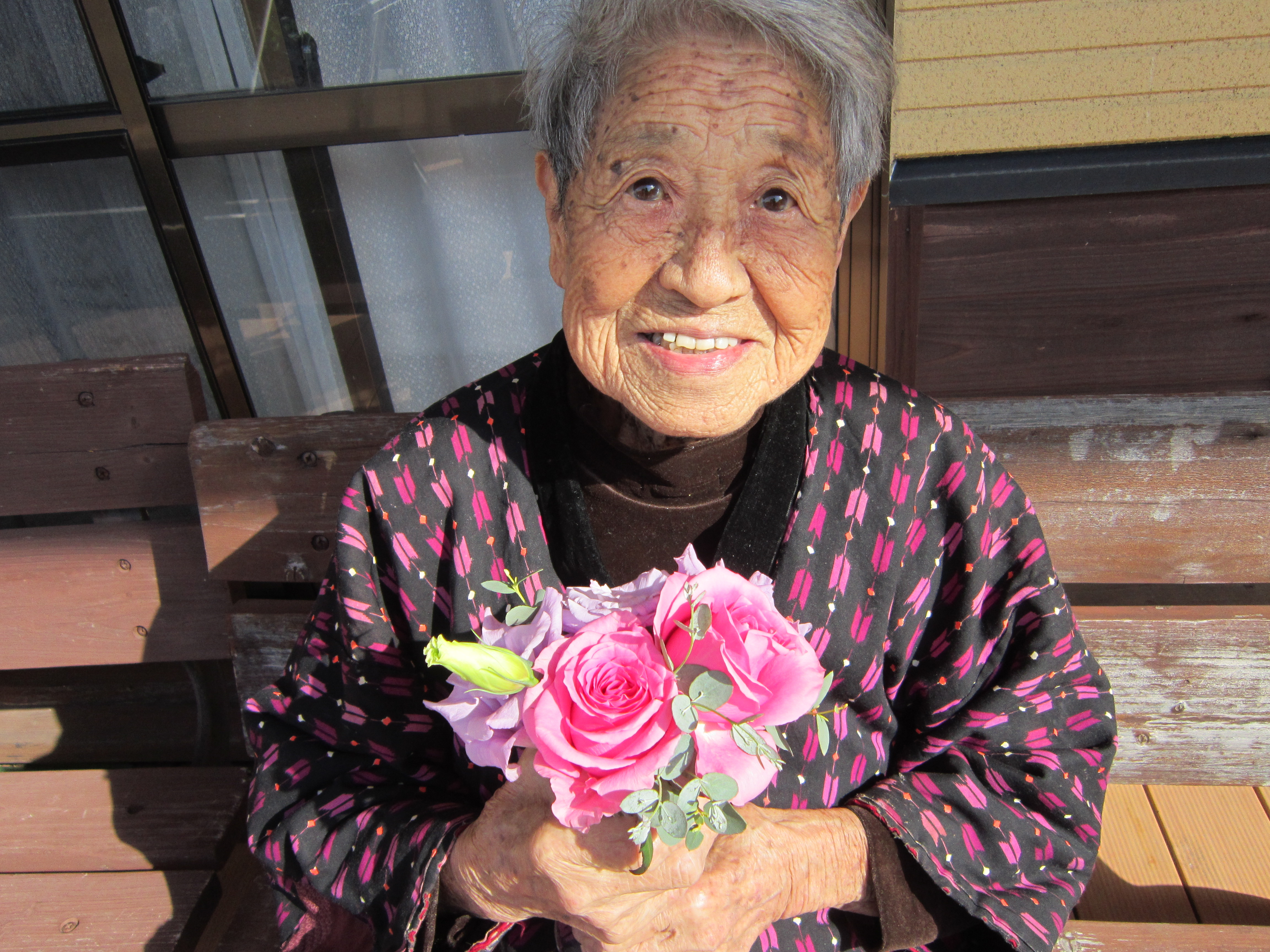 かわいいブーケをもらってきたのでお客様に渡して記念撮影をしました!