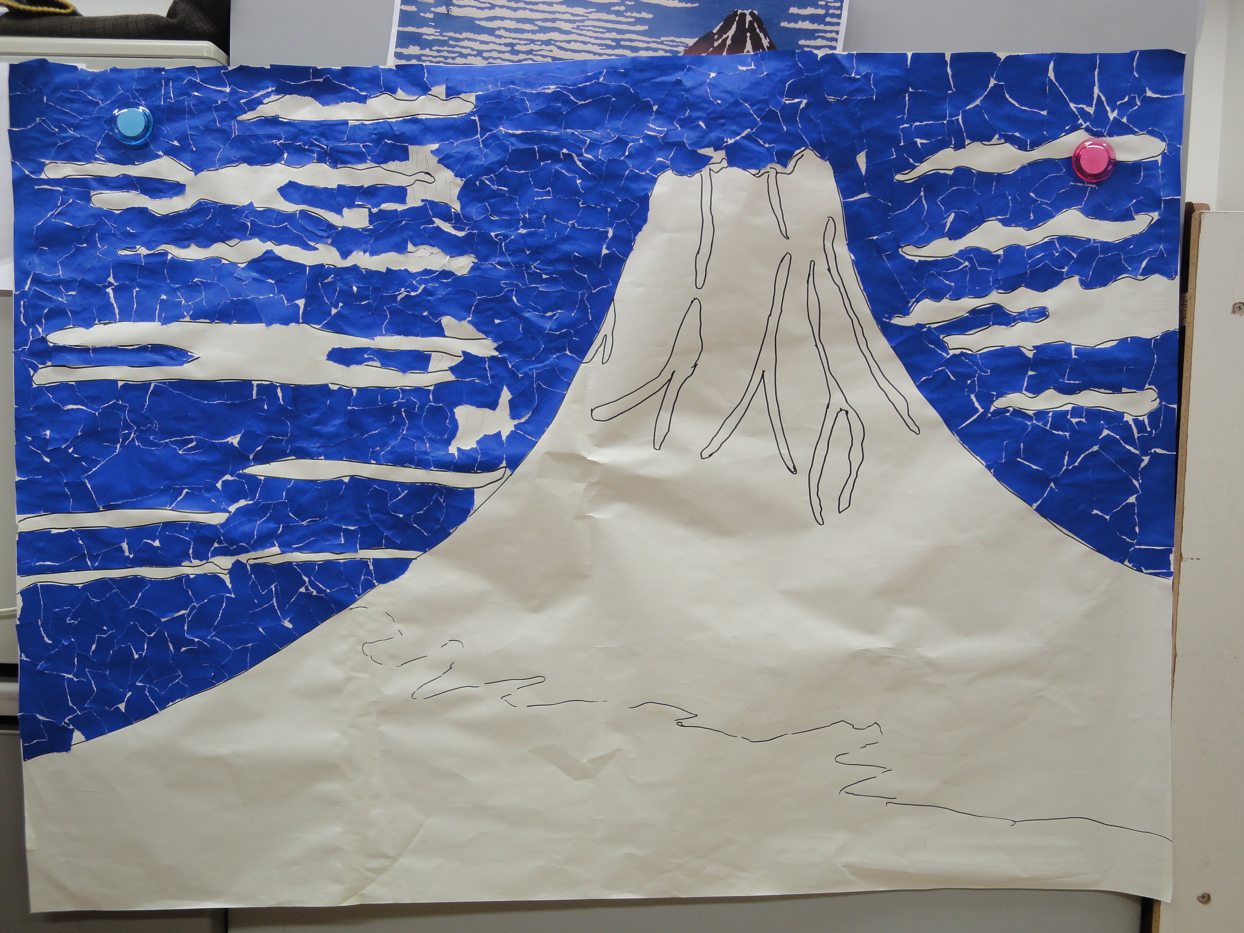 お正月に向けて、富士山の貼り絵を作成中です(^_-)-☆