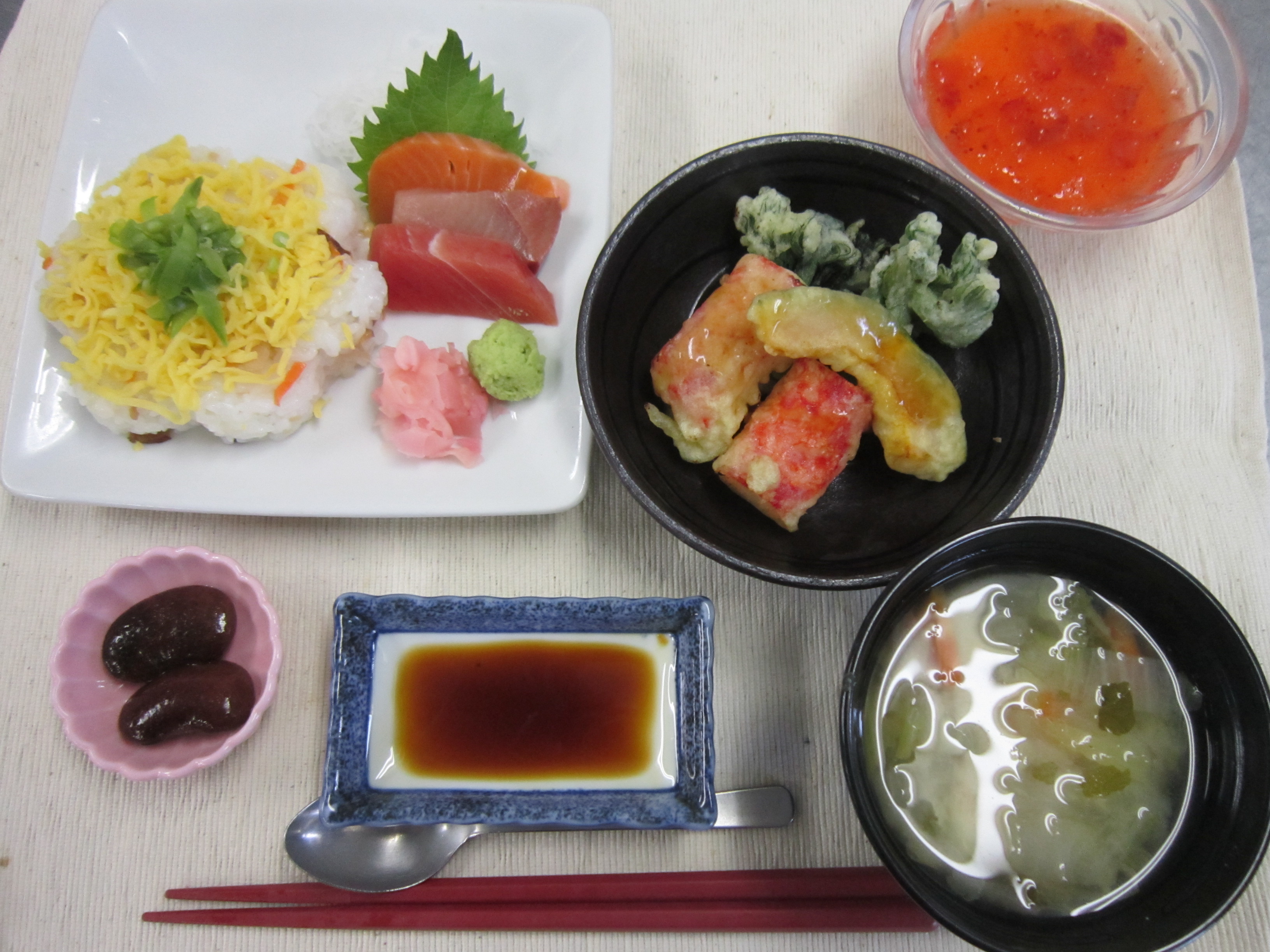 この日はY様に選択メニューを選んでもらい、鮭のチラシ寿司を昼食に頂きました!