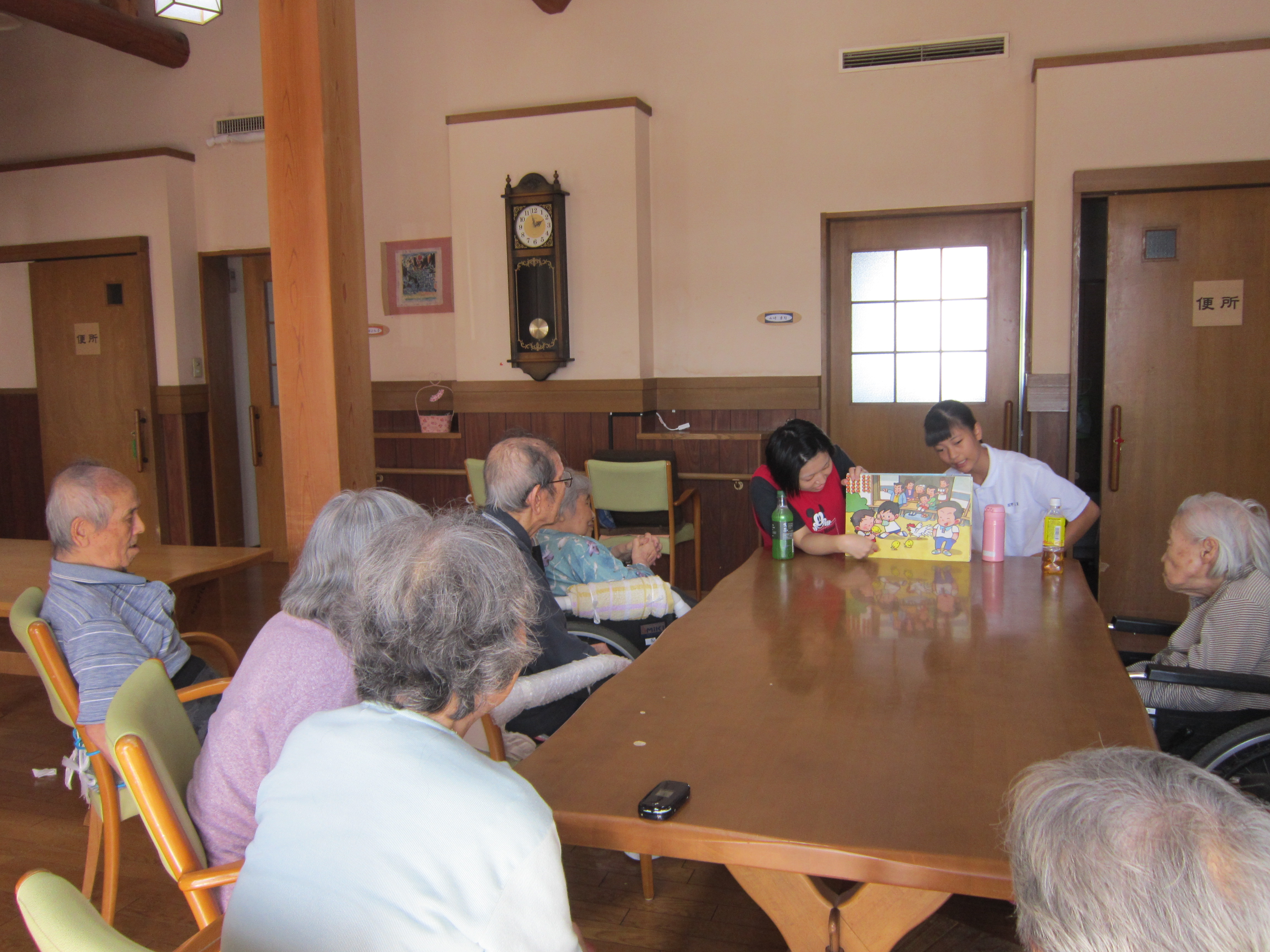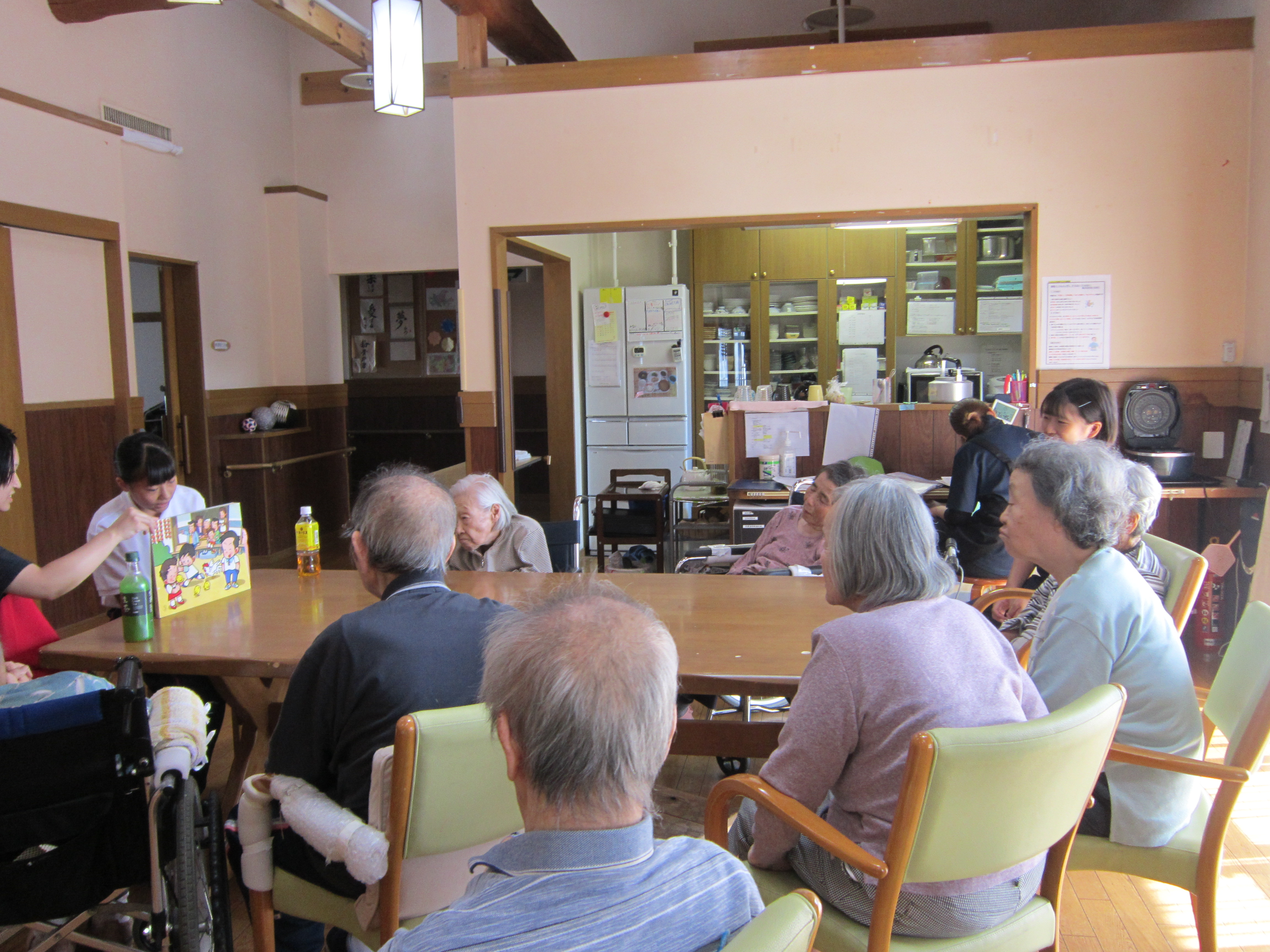 初日は緊張していましたが、4日目にはスタッフと一緒に紙芝居を読みました。