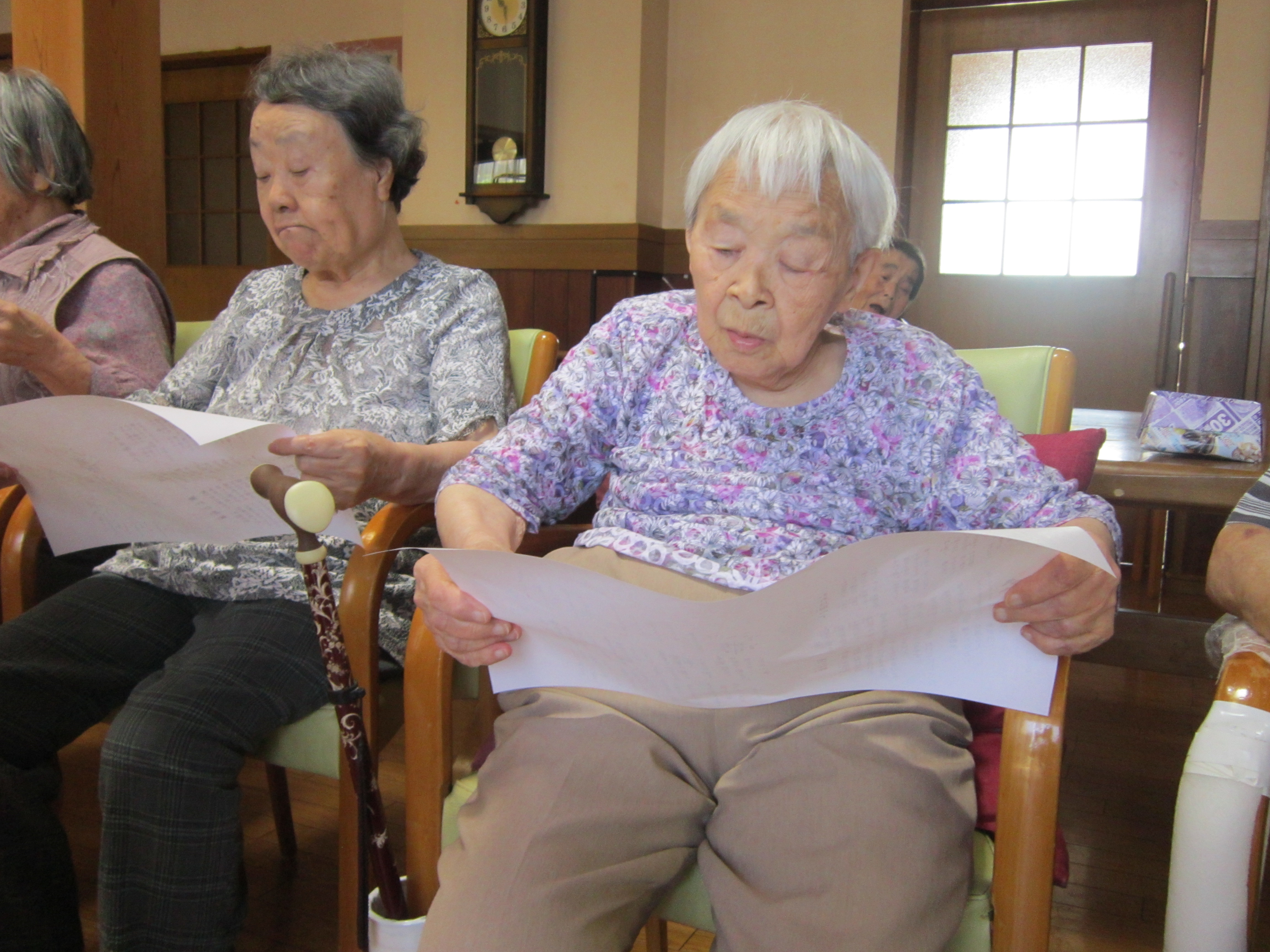 こちらは、昼食前に行っている、口腔体操の様子です。